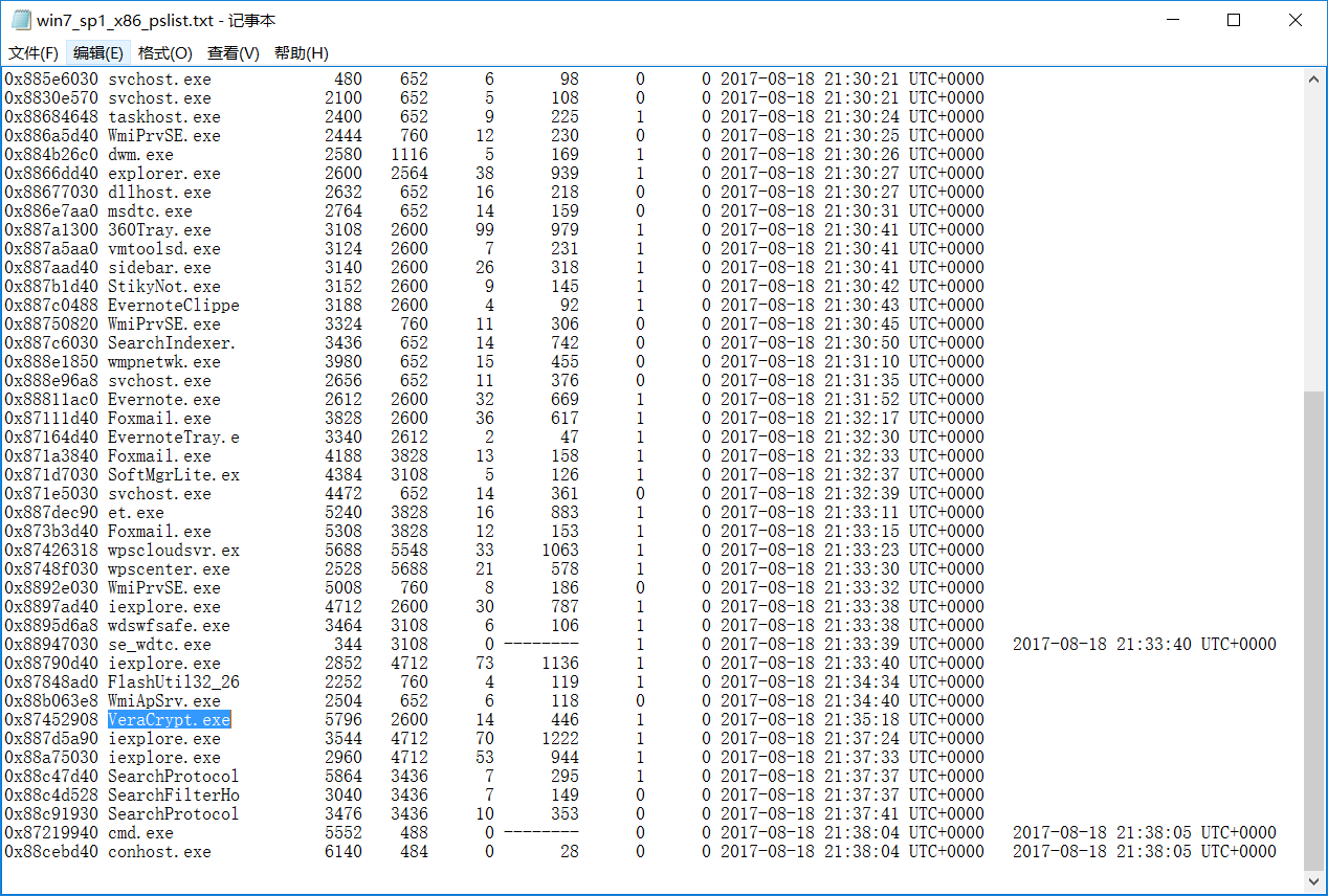 volatility_2.6_win64_standalone.exe -f Win7_SP1_x86.vmem –profile=Win7SP1x86 pslist?> Win7_SP1_x86_pslist.txt